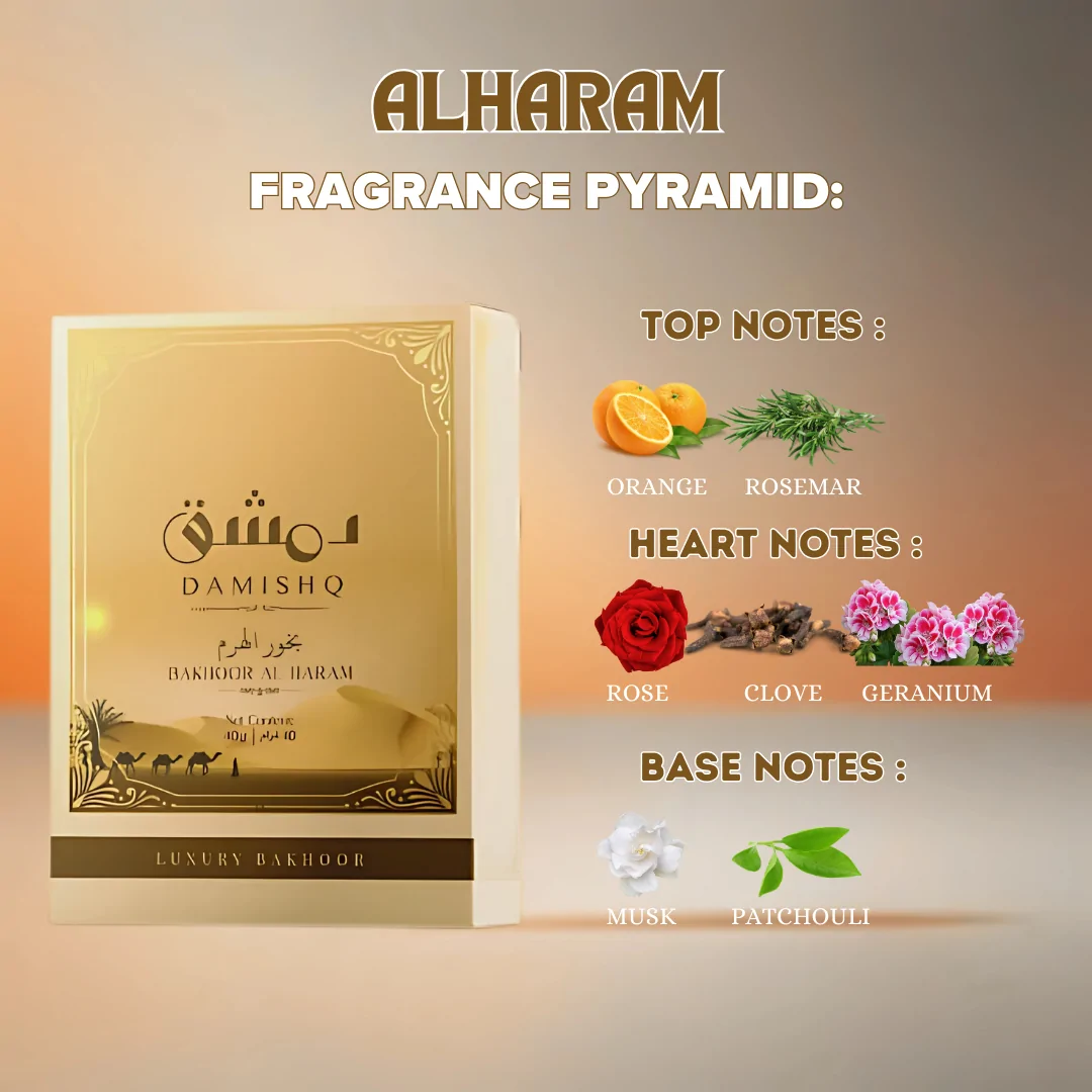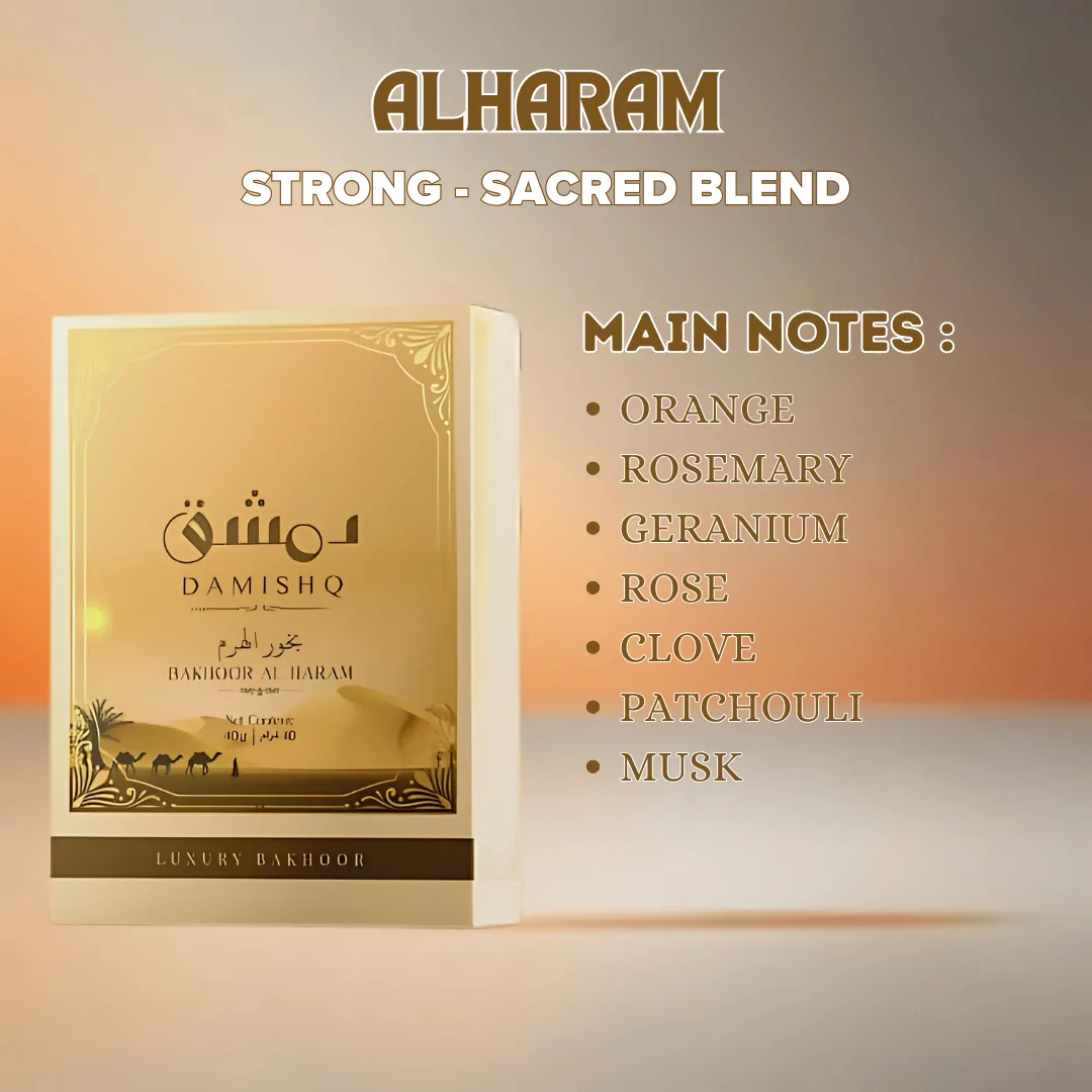 Exquisite 40g bakhoor with oud, amber, zaffran, khus, sandalwood, and musk for a captivating aroma.