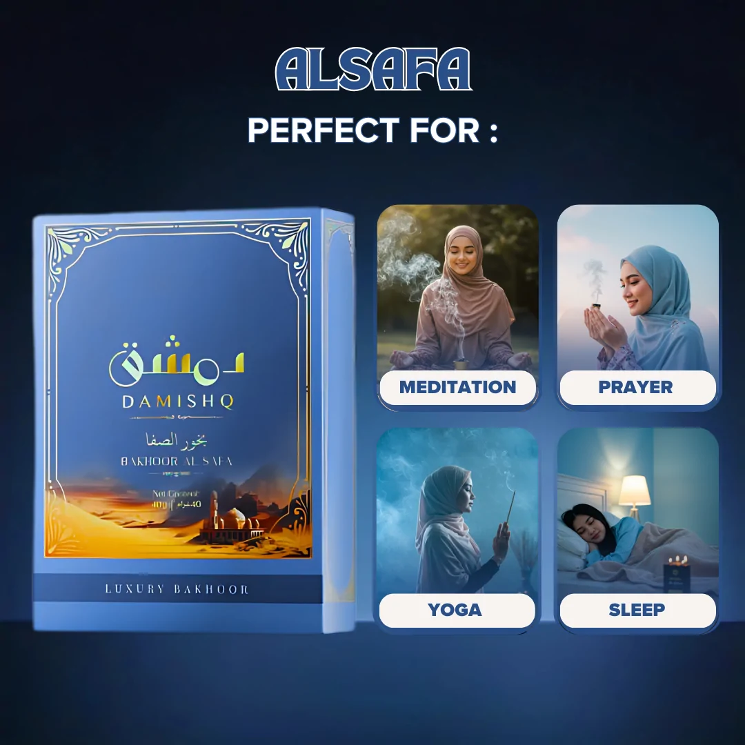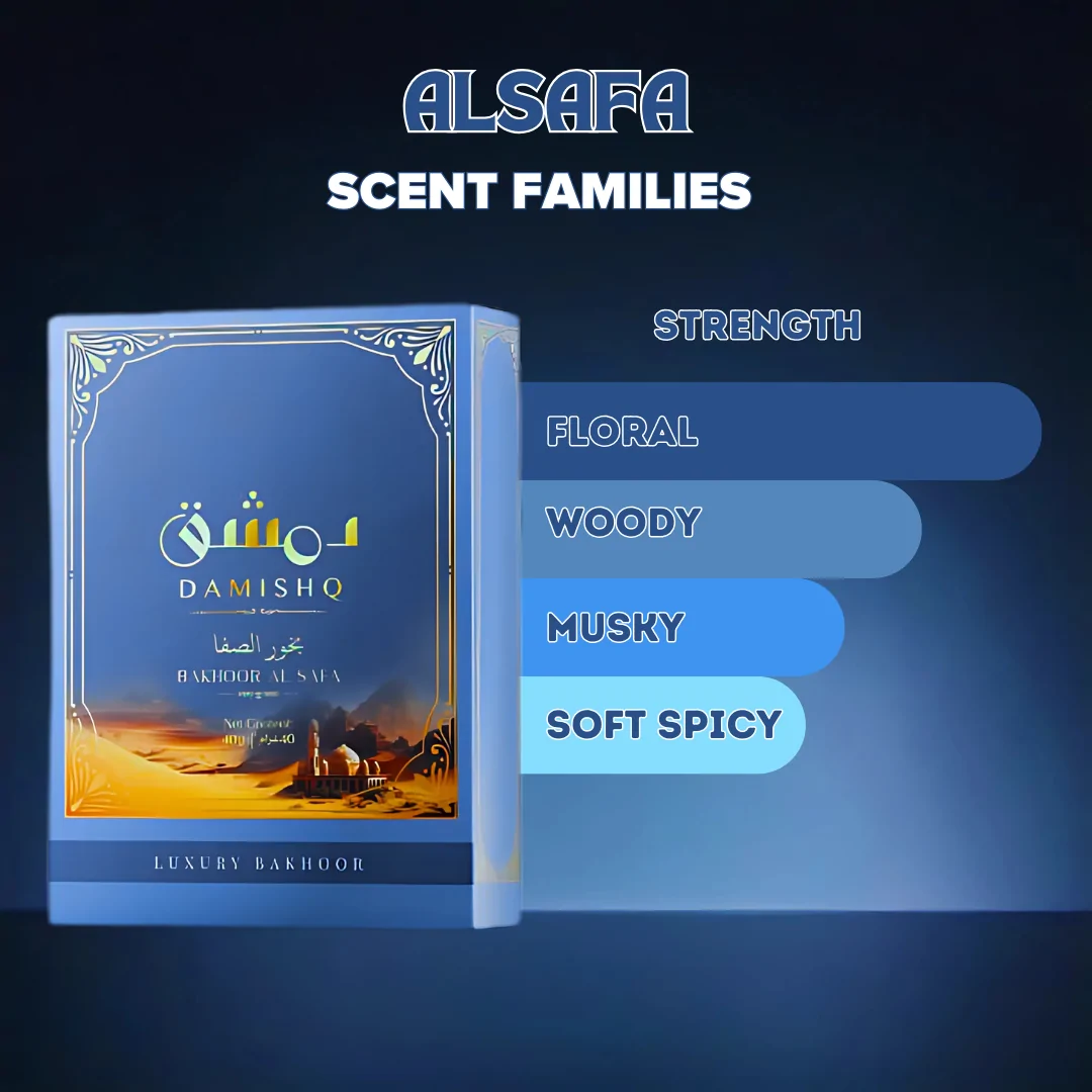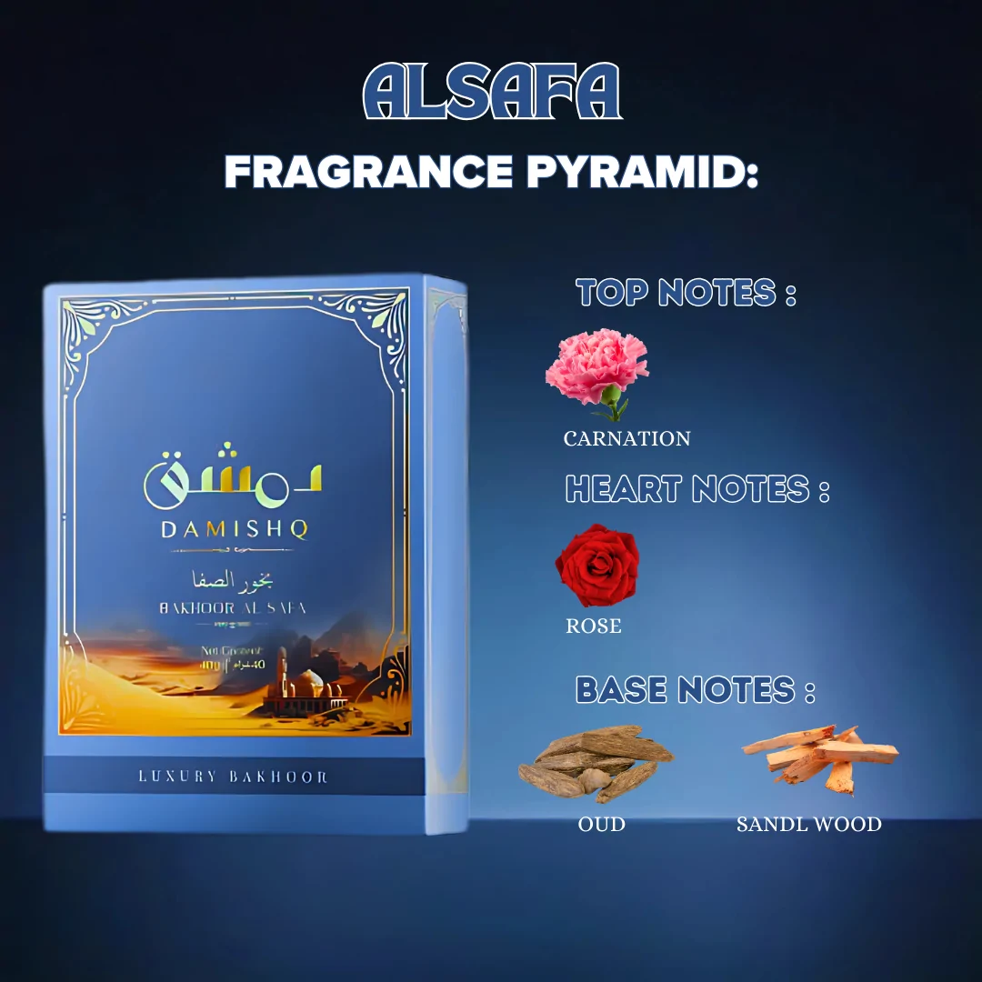 Premium 40g bakhoor with natural ingredients, emitting warm, woody notes for a serene and luxurious ambiance.